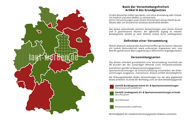 Um wichtige Fragen nach den Regeln und Gesetzen um öffentliche Versammlungen kompakt zu beantworten und zu veranschaulichen, hat der Pressedienst entsprechende Grafik erstellt. Hier klicken.