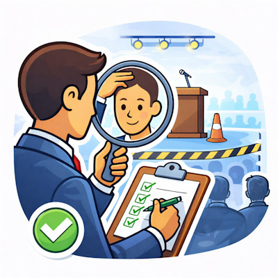 Vor dem Auftritt lohnt ein kurzer letzter Blick: Sitz von Kleidung, Haare, Gesicht, Haltung und das unmittelbare Umfeld. Kleine Unachtsamkeiten wirken auf Bildern oft stärker als vor Ort. Wer vor Menschen und Medien spricht, sollte den eigenen Auftritt daher kurz bewusst prüfen.